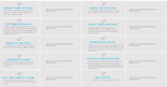 This tool is very useful if you need to prepare your sales communication. The 19 suggestions are sometimes interestingly surprising, and they will elevate your sales message through the roof.