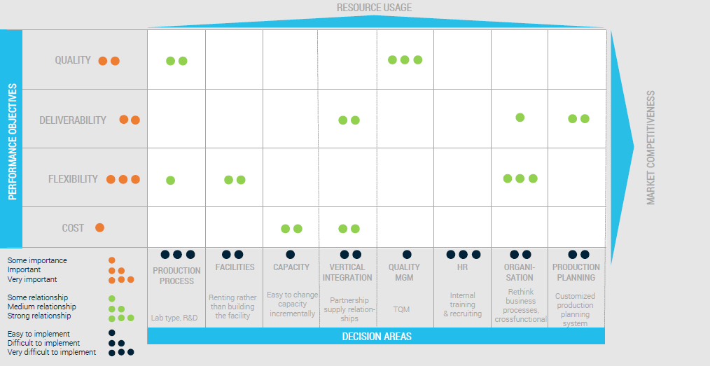 Easy to use manufacturing strategy matrix to align market priorities with production system